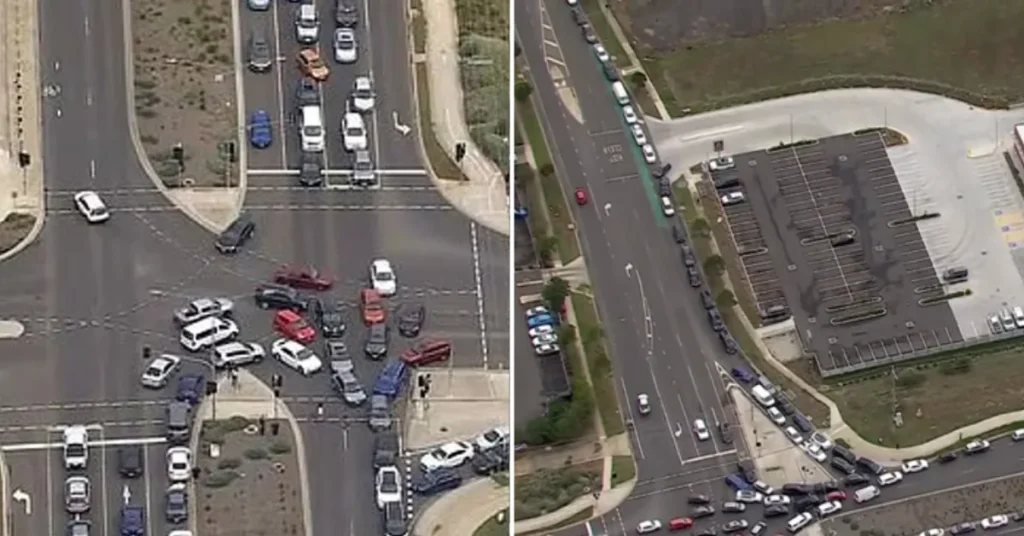 According to Victoria Police, officers arrived at the scene around 7:30 am to find Leakes Road and surrounding streets completely blocked by a “mad dash” for fuel. Aerial footage from 9News showed queues stretching for blocks, with some drivers reportedly waiting since 4:00 am.